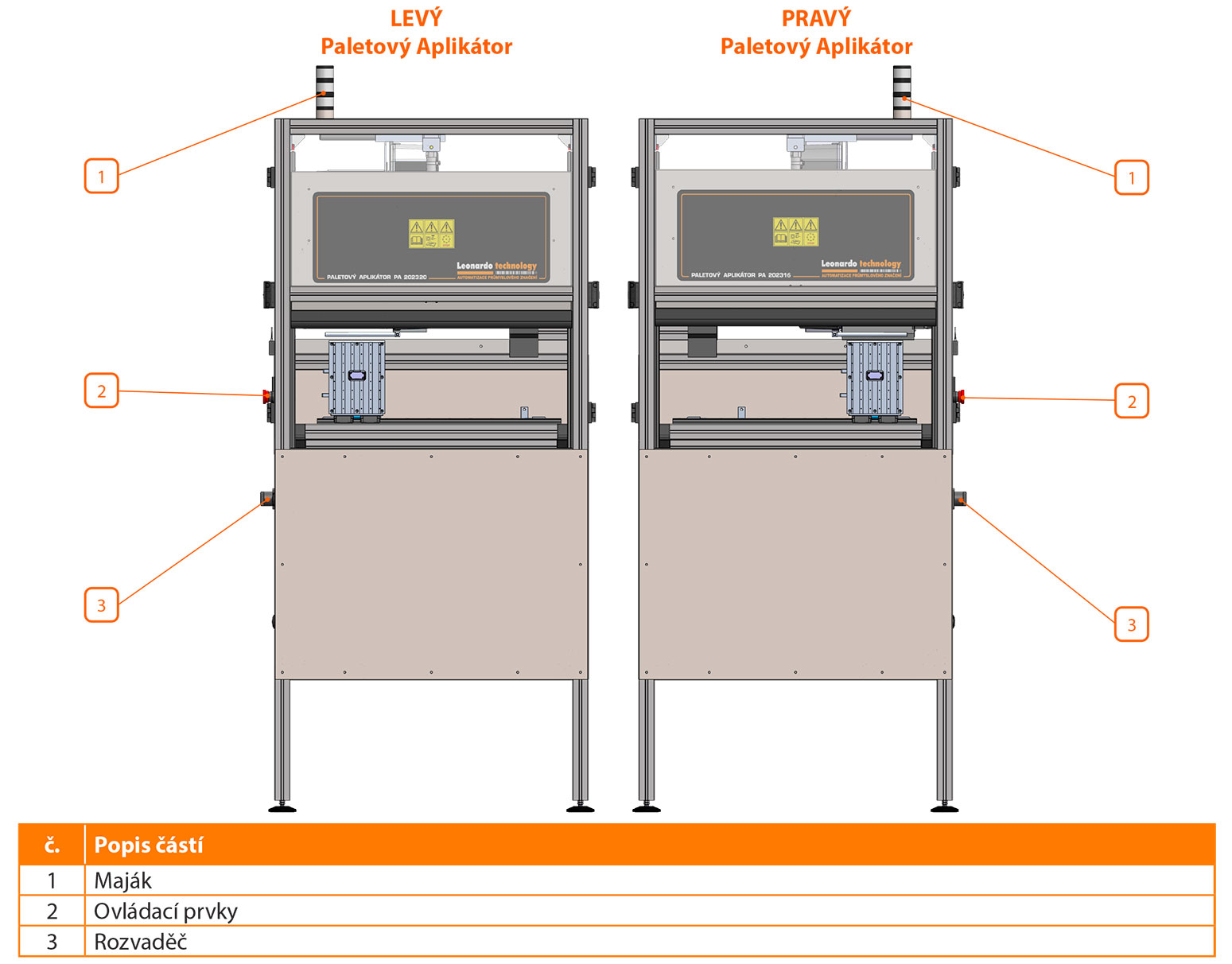 | Výška aplikace etikety na paletu | Dle doporučení standardu GS1, aplikátor má v základní konfiguraci mechanicky nastavitelné nohy pro nastavení výšky aplikace etikety |